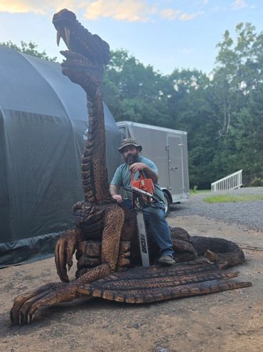 Growing up in a rural community and navigating the challenges of learning disabilities, I found art to be my voice and my way of engaging with the world. Working with reclaimed materials, I honor nature by giving new purpose to discarded wood, imbuing each sculpture with an environmental ethos. Chainsaw carving, a traditional American craft, is my medium of choice, allowing me to bridge folk art traditions with the innovation of contemporary art.